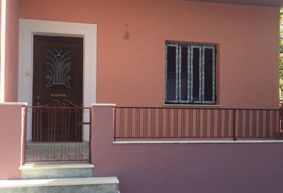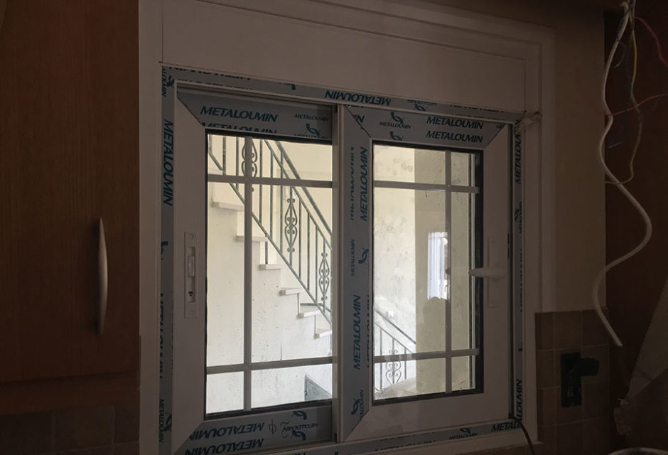 Κατασκευή & Τοποθέτηση κουφωμάτων σειρά EXALCO 109C χρώμα RAL 7012 , σίτες και ανοιγόμενα παντζούρια. Κατασκευή και τοποθέτηση στεγάστρων με πολυκαρμπονικό και εσωτερικά inox κάγκελα